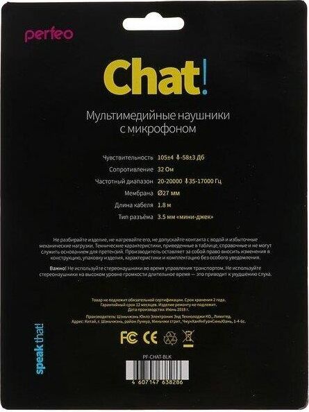Наушники PERFEO (PF-CHAT-BLK) CHAT , черный