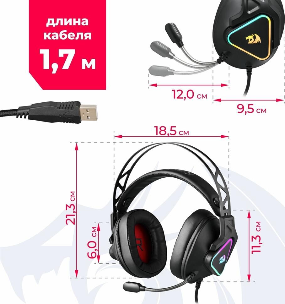 Наушники REDRAGON (70712) Cadmus RGB, звук 7.1, USB