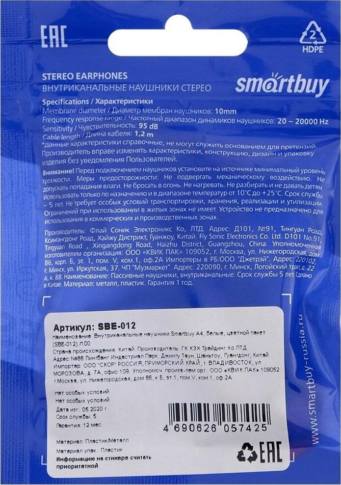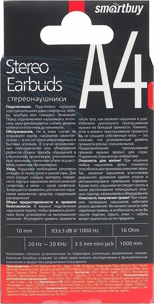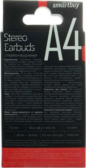 Наушники SMARTBUY (SBE-012K) A4 белый