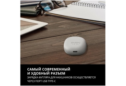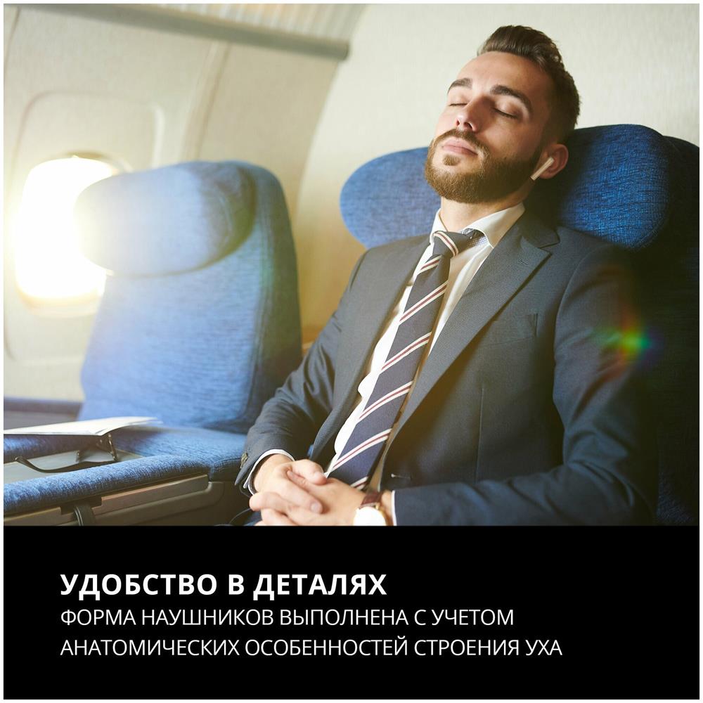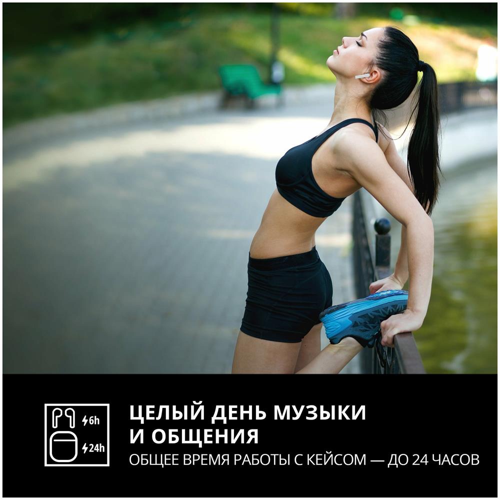 Гарнитура беспроводная, Чувствительность, дБ наушники: 90 ± 3 микрофон: -42 ± 3 Частотный диапазон, Гц наушники: 20 – 20 000 микрофон: 20 – 20 000 Мембрана, мм O 13 Сопротивление, Ом 16 Тип соединения Bluetooth Поддерживаемые профили Bluetooth HSP, HFP, A2DP, AVRCP Радиус действия, м до 10 Время работы от аккумулятора, часов без зарядного кейса: до 6 с зарядным кейсом: до 24 Тип разъема USB Type-C для зарядки