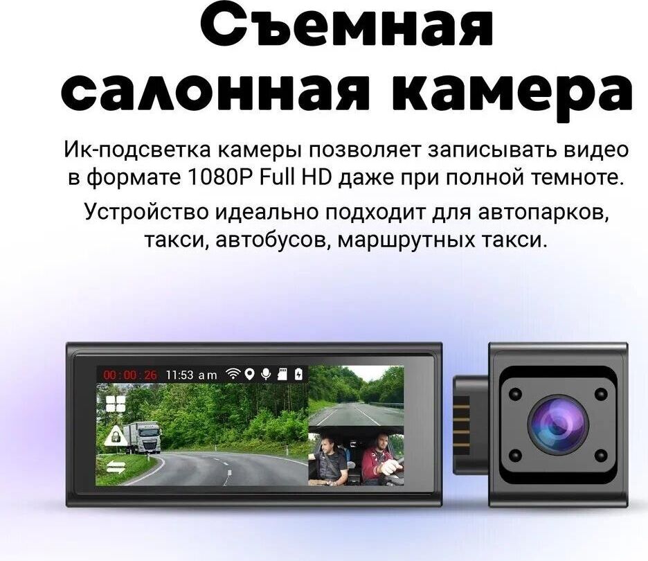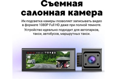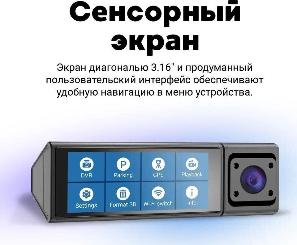 Количество камер: 3. Матрица: GC4653. Угол обзора камеры: 135. Угол обзора второй камеры: 106. Датчик G-shock: есть. GPS-модуль: есть. Разъем USB: miniUSB. Питание: от гнезда прикуривателя. Встроенный аккумулятор: есть. Диагональ дисплея: 3.16. Тип дисплея: IPS. Регулировка поворота второй камеры: ручная. Процессор: MSTAR 8629Q. Запись в формате HD: 1440p. Защита от перезаписи: есть. Цвет: черный. Габариты упаковки (ед) ДхШхВ: 0.26x0.13x0.07. Вес упаковки (ед): 0.81. Гарантия: 12 мес.. Максимальное разрешение: 2560 х 1440. Макс. разрешение (вторая камера): 1920 х 1080. Поддержка карт памяти: microSD, до 128 ГБ. Особенности устройства: ИК-подсветка, включение по сигналу датчика, возможность сделать фотоснимок, динамик, дисплей, микрофон. Особенности дисплея: сенсорный. Запись: даты и времени, скорости движения. Камера: GC4653, 135 °, 2560 х 1440. Диагональ дисплея: 3.16 ". Вторая камера: 106 °, 1920 х 1080. Датчик G-SHOCK: есть