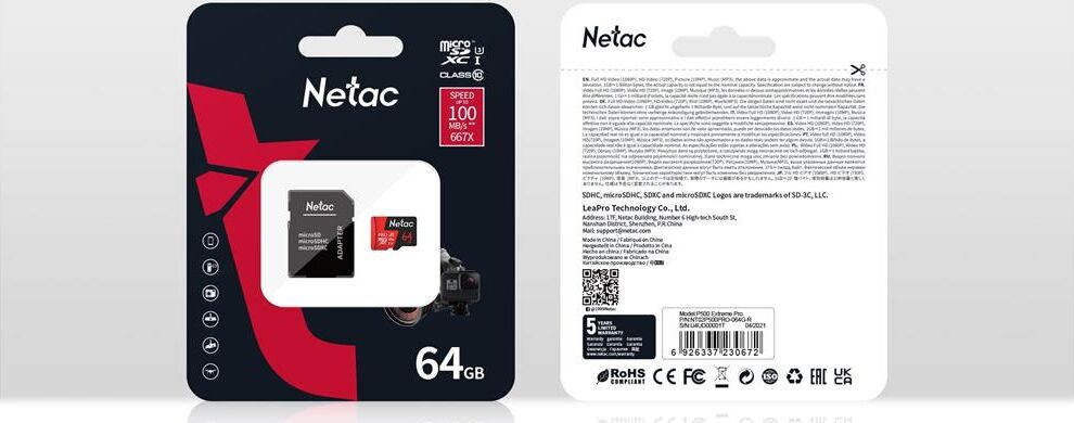 NETAC 64Gb MicroSD P500 Extreme Pro + SD adapter (NT02P500PRO-064G-R)