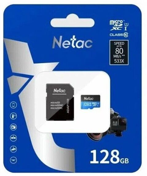 [Карта памяти ] Micro SecureDigital 128GB Netac microSDHC Class10 NT02P500STN-128G-R P500 + adapter