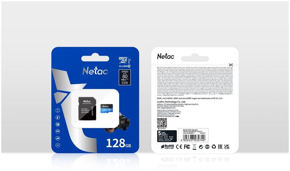 NETAC Micro SecureDigital 128GB microSDHC Class10 NT02P500STN-128G-R P500 + adapter