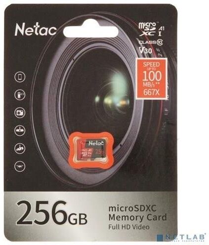 NETAC Micro SecureDigital 256GB P500 Extreme Pro MicroSDXC V30/A1/C10 up to 100MB/s, retail pack car
