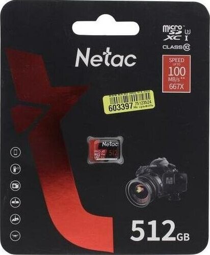 [Карта памяти ] Micro SecureDigital 512GB Netac microSDXC Class10 Netac [NT02P500PRO-512G-R] P500 Extreme Pro + adapter