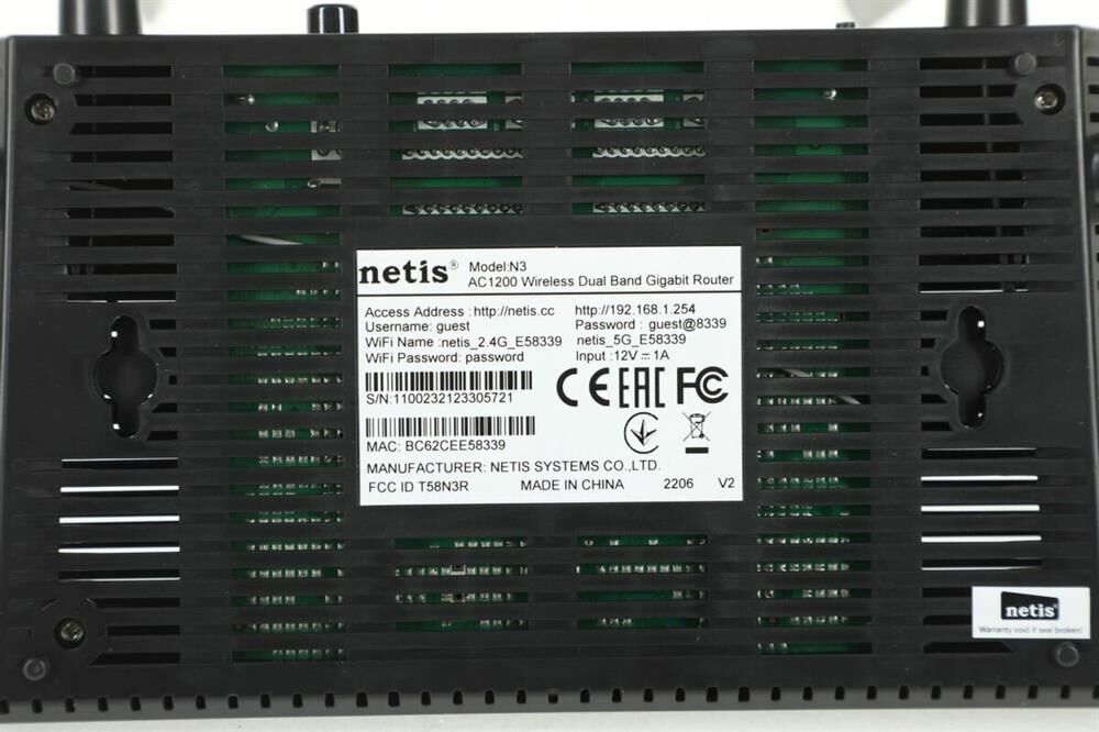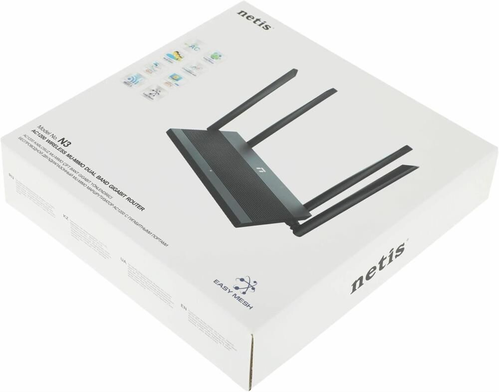 NETIS Роутер беспроводной N3 AC1200 10/100/1000BASE-TX черный