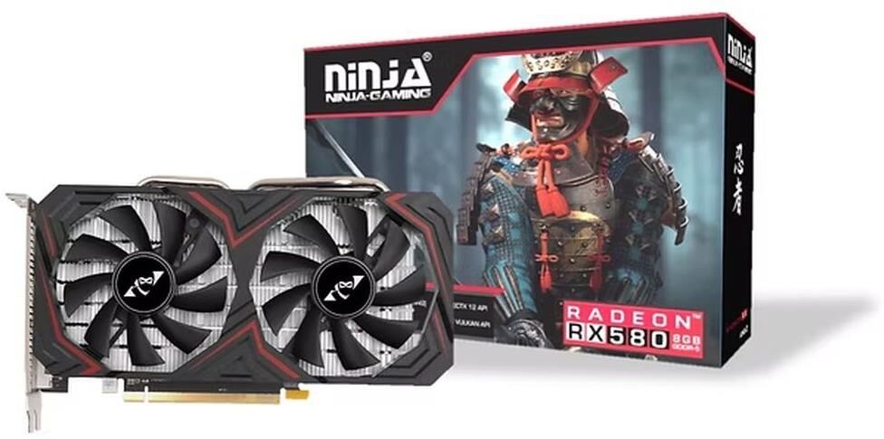 **Видеокарта Ninja (Sinotex) RX 580 4GB GDDR5 — мощь и качество для ваших игр!** Погрузитесь в мир захватывающих игр с видеокартой Ninja (Sinotex) RX 580! Она обеспечит высокую производительность и потрясающее качество изображения. **Основные характеристики:** * **Графический процессор:** AMD Radeon RX 580. * **Объём видеопамяти:** 4 ГБ GDDR5. * **Разрядность шины видеопамяти:** 256 бит. * **Максимальное разрешение:** 5120х2880. * **Количество подключаемых мониторов:** до 3 штук. * **Интерфейсы подключения:** DVI (1 шт.), DisplayPort (1 шт.), HDMI (1 шт.). * **Охлаждение:** активное, с двумя вентиляторами. * **Разъёмы дополнительного питания:** 6-pin. * **Длина видеокарты (PCB):** 210 мм. * **Количество занимаемых слотов:** 2. Эта видеокарта идеально подходит для игровых систем. С ней ваши игры заиграют новыми красками — чёткое и плавное изображение, высокая детализация и реалистичные спецэффекты гарантированы!