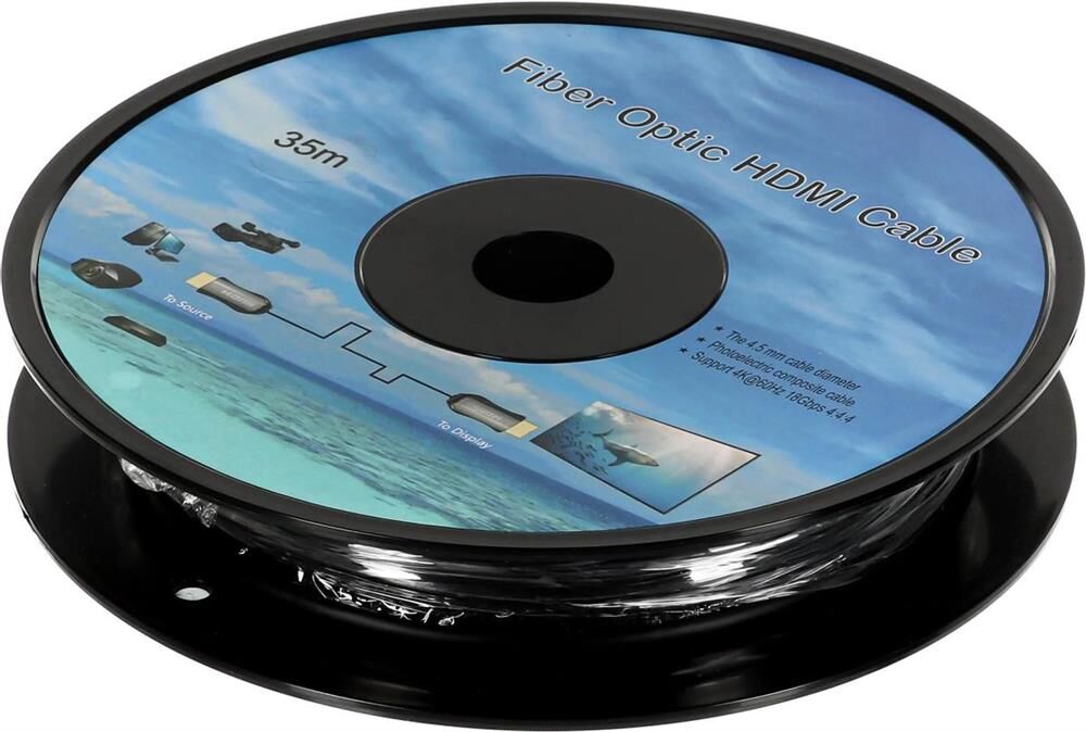 NONAME Кабель аудио-видео Fiber Optic, HDMI (m) - HDMI (m), ver 2.0, 35м, GOLD, черный