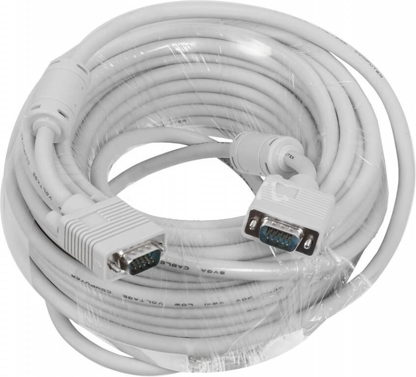 Тип: VGA. Функциональный тип: Кабель. Ферритовые фильтры: Да. Длина товара: 30. Цвет: белый. Вес упаковки (ед): 2.29. Гарантия: 6 мес.. Разъём 2: DB15 (m). Разъем 1: DB15 (m). Разъемы: DB15 (m) - DB15 (m). Особенности: ферритовые фильтры. Длина: 30 м. Цвет: белый