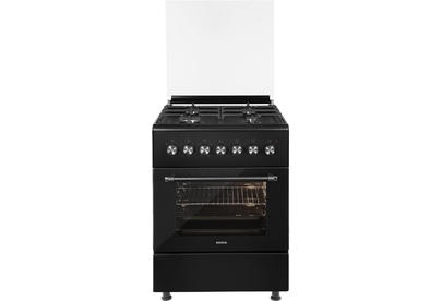 GE 6064 B: ШхГхВ: 60х60х88,5 см; 4 газовые конфорки; полный газ-контроль; автоподжиг; решетка: чугунная; электрическая духовка с конвекцией: 63 л; 6 режимов; подсветка; гриль; энергосберегающее стекло дверцы духовки; отделение для хранения посуды; таймер механический с автоотключением духовки; 2 противня, 1 хромированная решетка; крышка: стекло; цвет: черный