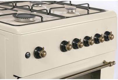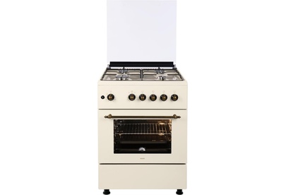 GG 6061 Y: ШхГхВ: 60х60х88,5 см; 4 газовые конфорки; автоподжиг; решетка: LAMA; газовая духовка: 63 л; 2 режима; газ-контроль горелок духовки; подсветка; гриль; механический термометр для духовки; отделение для хранения посуды; таймер механический; 1 противень, 1 хромированная решетка; крышка: стекло; цвет: бежевый