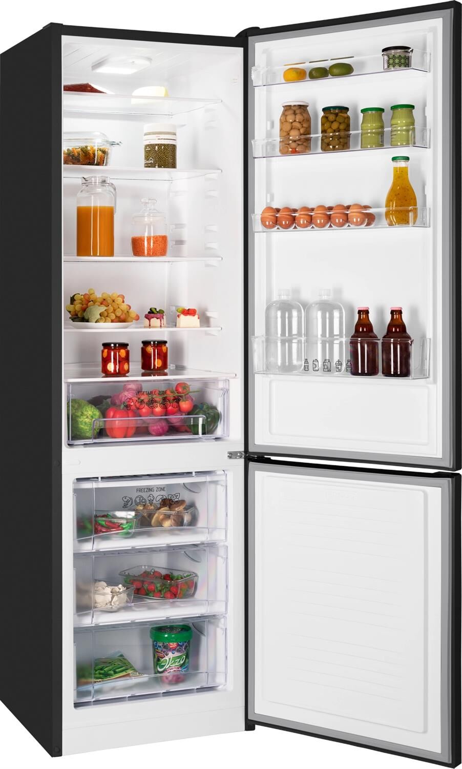 2-камерный, 338 л (ХК 238 л + МК 100 л), класс А+, LED-освещение, МК внизу, 5 полок стекло, выдвижной овощной ящик, 3 отделения в МК, автоматическая система оттаивания, 198х57х62,5 см, цвет: черный матовый