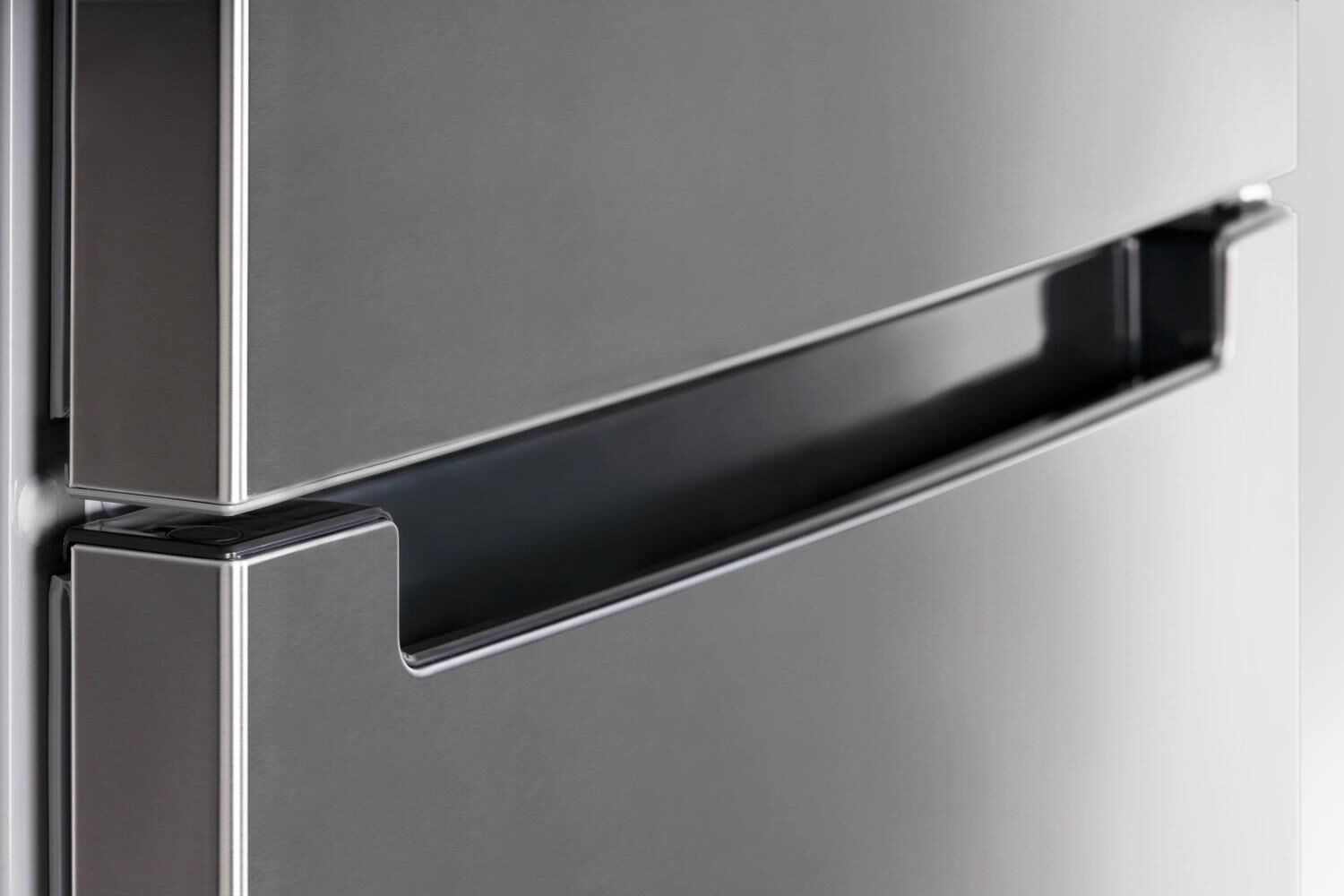 2-камерный, 310 л (ХК 205 л + МК 105 л), класс А+, LED-освещение, МК внизу, 4 полки стекло, выдвижной овощной ящик, 3 отделения в МК, 1 лоток для ягод, система NO FROST в МК, автоматическая система оттаивания, 188х57х62,5 см, цвет: нерж.сталь