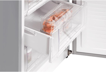 2-камерный, 343 л (ХК 238 л + МК 105 л), класс А+, LED-освещение, МК внизу, 4 полки стекло, выдвижной овощной ящик, 3 отделения в МК, 1 лоток для ягод, автоматическая система оттаивания, 203х57х62 см, цвет: серебристый