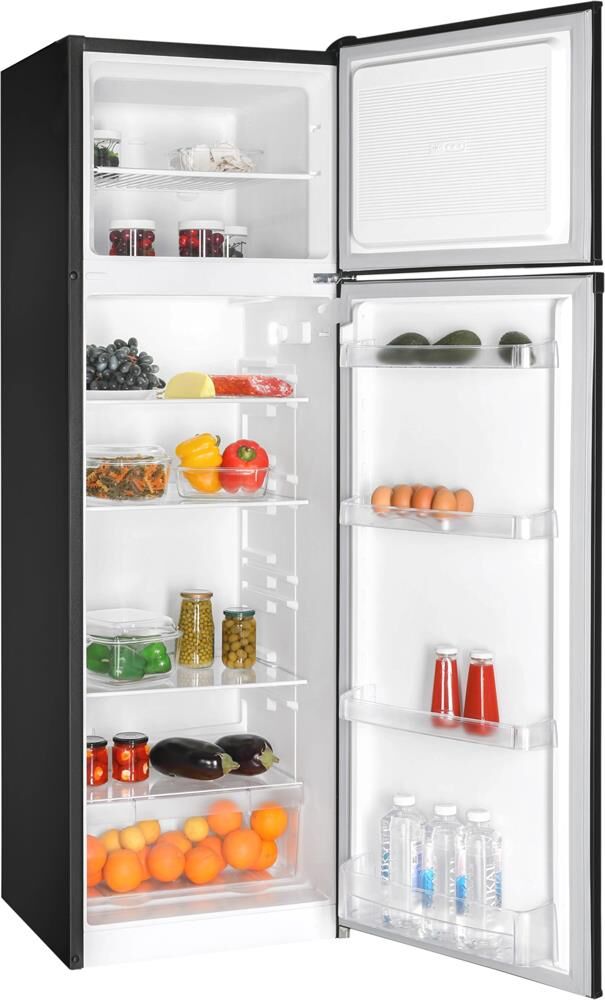 2-камерный, 330 л (ХК 262 л + МК 68 л), класс А+, МК вверху, 4 полки стекло, овощной ящик, LED-освещение, автоматическая система оттаивания, 177х57х63 см, цвет: черный матовый