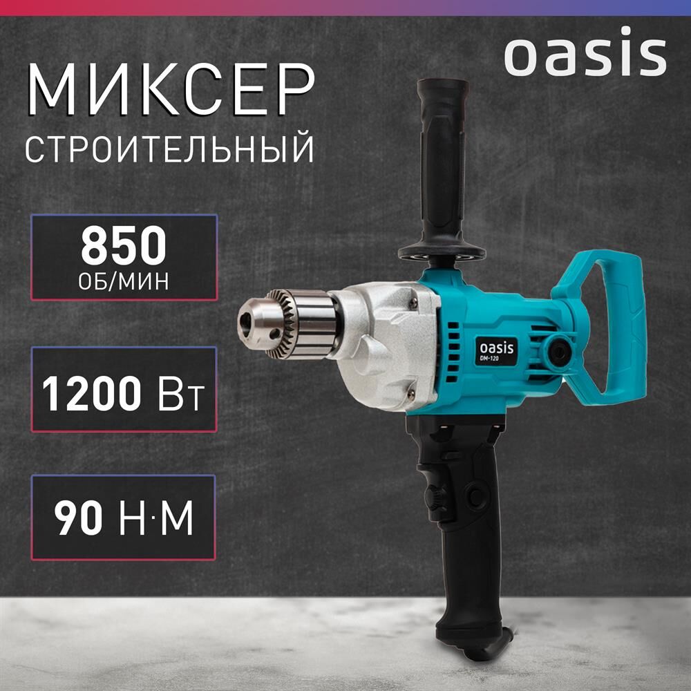 Мощность, Вт 1200. Параметры электросети, В/Гц 220/50. Частота вращения шпинделя, об/мин 0-850. Максимальный крутящий момент, Н·м 90. Тип патрона ключевой. Размеры изделия, мм 430?90?350. Вес нетто, кг 2,73. Миксер – 1 шт. Дополнительная рукоятка – 1 шт. Угольная щётка – 2 шт. Ключ – 1 шт. Руководство по эксплуатации - 1 шт