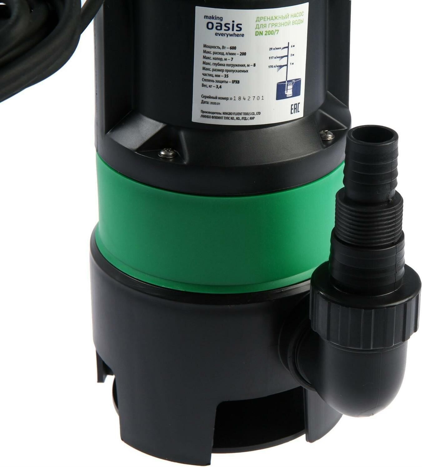 Модель DN 200/7 Мощность, Вт 600 Максимальный расход, л/мин 200 Максимальный напор, м 7 Максимальная глубина погружения, м 8 Максимальный размер пропускаемых частиц, мм 35 Материал корпуса насоса Пластик Длина кабеля, м 8 Материал крыльчатки Пластик Размеры изделия, см 27x14x22 Вес, кг 3,4