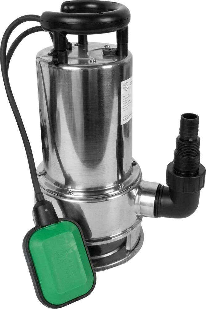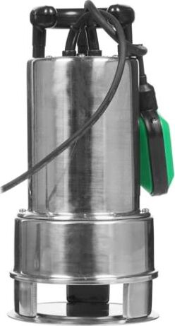 Насос дренажный для грязной воды, мощность 110 Вт, максимальный напор 11 метров, максимальный расход 266 л/мин, максимальный размер пропускаемых частиц 35 мм, максимальная глубина погружения 8 метров, материал корпуса нержавейка