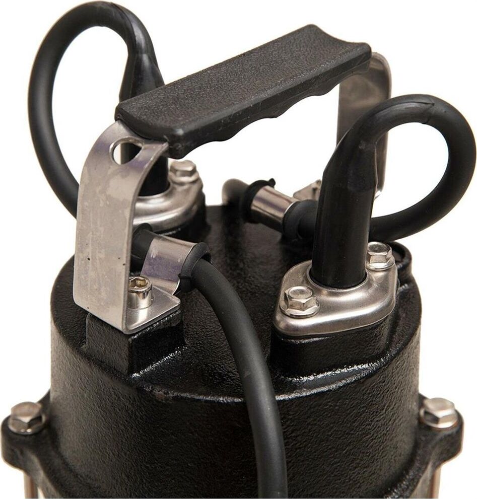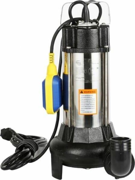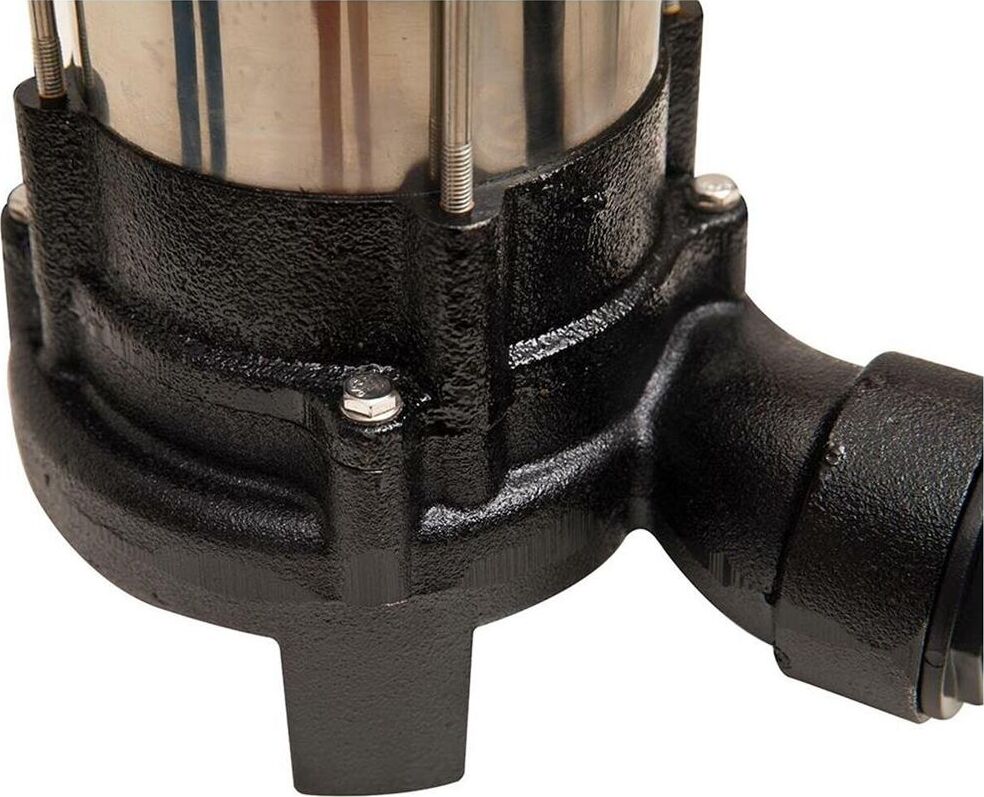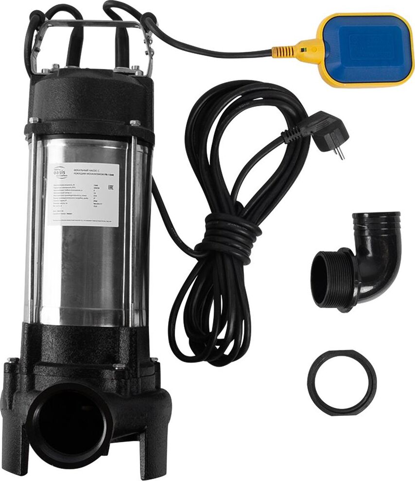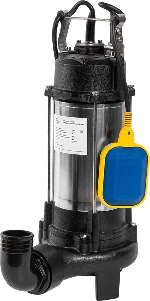 Насос фекальный с режущим механизмом, мощность 1300 Вт, максимальный напор 13 метров, максимальный расход 310 л/мин, максимальный размер пропускаемых частиц 50 мм, максимальная глубина погружения 8 метров, материал корпуса чугун, материал крыльчатки чугун