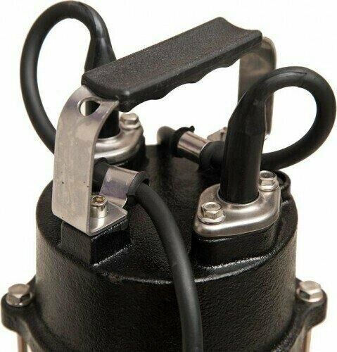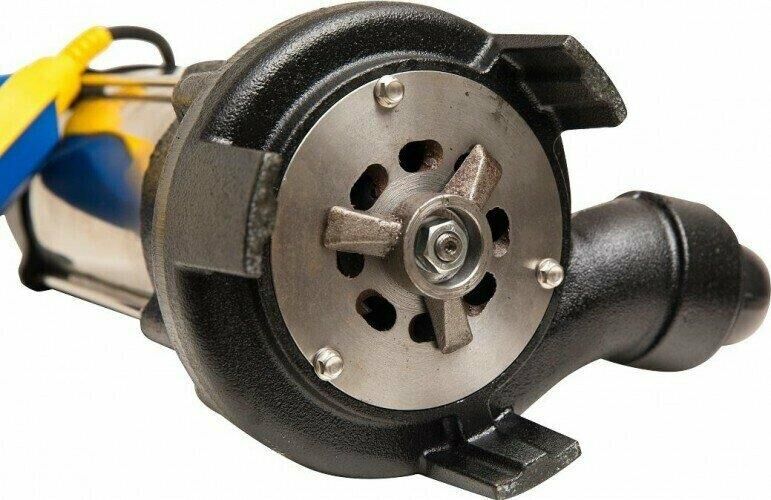 Насос фекальный с режущим механизмом, мощность 1800 Вт, максимальный напор 12 метров, максимальный расход 350 л/мин, максимальный размер пропускаемых частиц 50 мм, максимальная глубина погружения 8 метров, материал корпуса чугун, материал крыльчатки чугун
