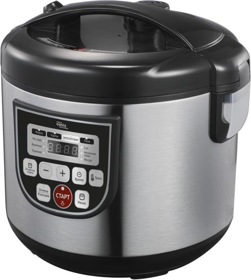 Параметры сетевого питания, В/Гц 220-240/50 Мощность, Вт 860 Цвет чёрный, серебристый Материал корпуса нержавеющая сталь, пластик Покрытие чаши антипригарное DAIKIN Тип управления кнопочный Количество программ 12 Объем, л 5 Класс защиты I Регулировка температуры и времени + Функция памяти - Звуковой сигнал + Защита от перегрева + Поддержание температуры 12 ч Отложенный старт 24 ч Габаритные размеры, мм 282?269?272 Вес, кг 2,5 Режимы приготовления: Жарка Крупы Плов На пару Выпечка Тушение Суп Молочная каша Йогурт