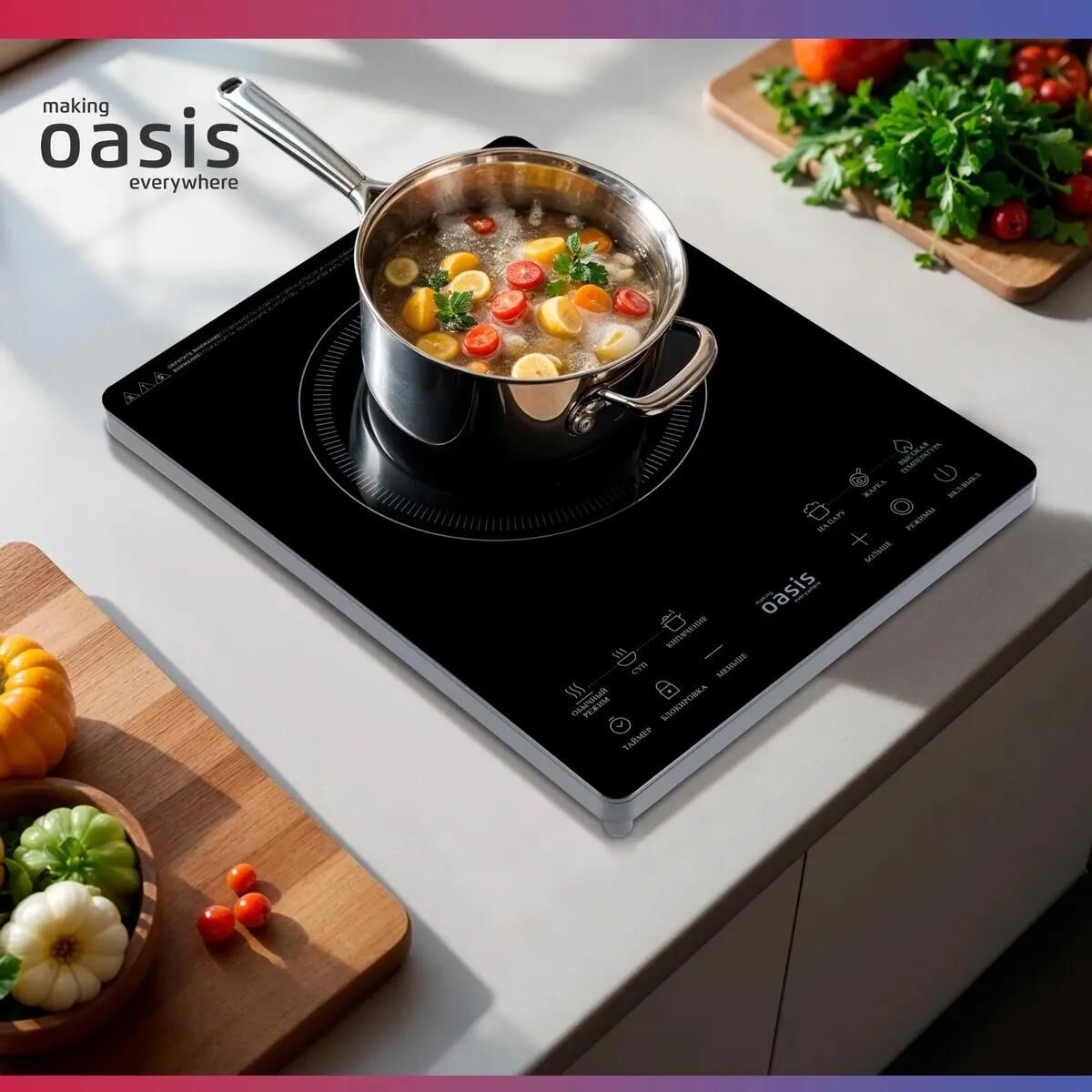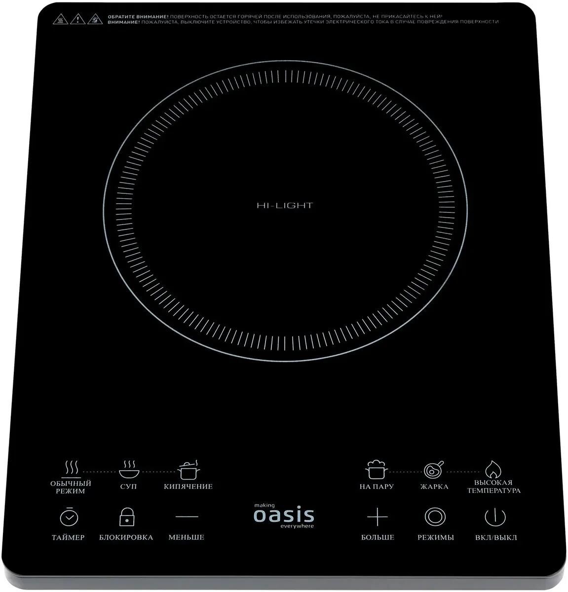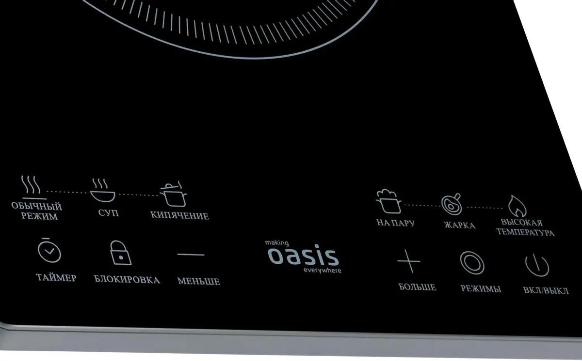 Тип настольнойплиты Электрическая Тип конфорки электрической настольнойплиты инфракрасная Управление сенсорное Дисплей есть Варочная поверхность Материал рабочейповерхности стеклокерамика Количество электрическихконфорок 1 Конфорка мощность 2000 Вт , диаметр200 мм Особенности Количество режимов регулировкитемпературы 10 Количество программприготовления 6 Программыприготовления *Обычный режим *Суп *Кипячение *На пару *Жарка *Максимальный режим Максимальный веснагрузки 10 кг Таймер есть Типтаймера электронный Индикаторработы есть Индикаторы остаточноготепла есть Встроенныйтермостат есть Звуковойсигнал есть Защита отперегрева есть Блокировка отдетей есть Защитноеотключение есть Прорезиненныеножки есть Длина шнурапитания 1.3 м Размеры и цвет Цвет черный Размеры(ШхВхГ) 28 x 6.4 x 36 см Вес 2.2 кг