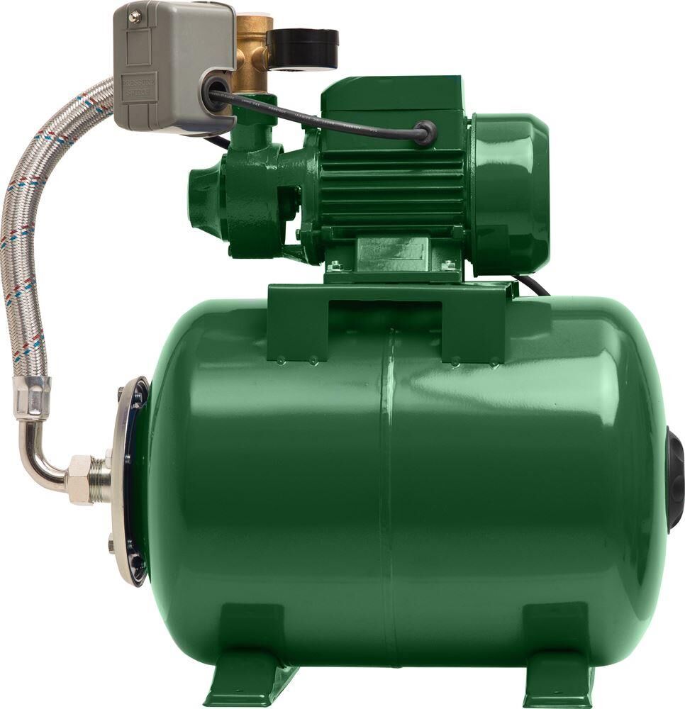 Автоматическая насосная станция OASIS, J, обмеднённая обмотка двигателя, Материал корпуса насоса - Чугун , Мощность - 370 Вт, Производительность - 38 л/мин, Максимальный напор - 34 м, Максимальная глубина всасывания 8 м, Рабочее давление - 1,2-2,5 бар, Емкость гидроаккумулятора - 19 л, Присоединительные размеры 1/2 дюйм.