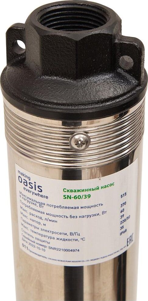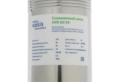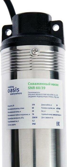 Мощность, Вт 370. Диаметр корпуса 3" . Максимальный расход, л/мин 60 . Максимальный напор, м 39. Максимально допустимая концентрация твердых частиц в воде, г/м3 100 . Максимальная глубина погружения, м 70. Степень защиты IP 68 . Макс. размер пропускаемых частиц, мм 1.5-2. Параметры электросети, В/Гц 220/50. Длина кабеля, м 30.