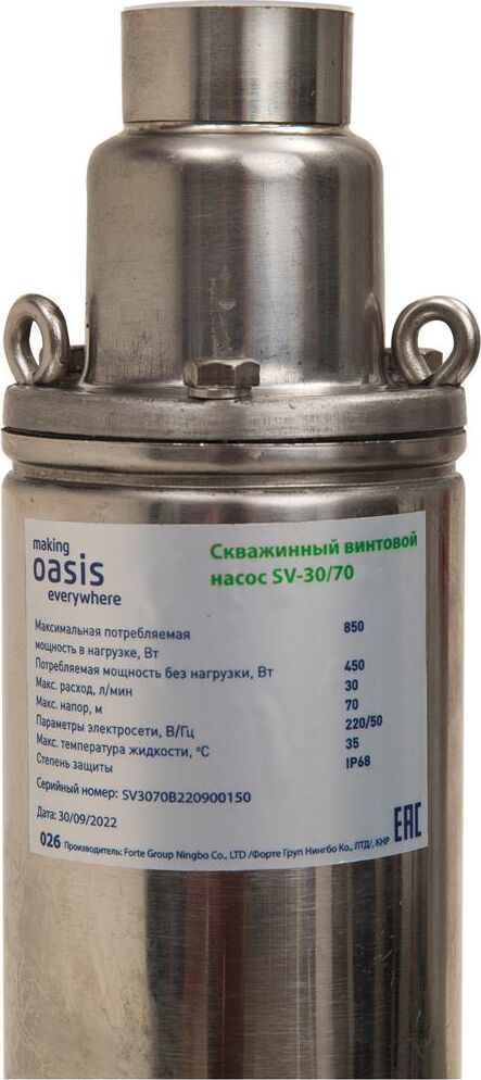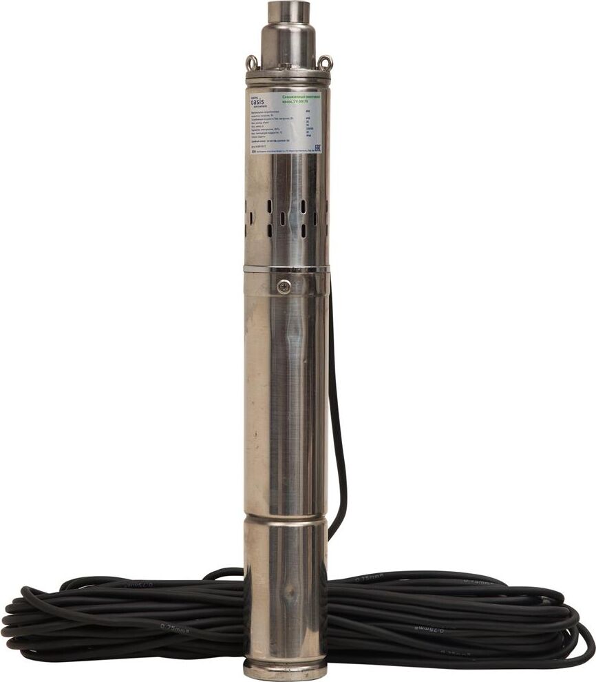Мощность, Вт 370. Макс. расход, л/мин 30. Макс. напор, м 70. Макс. глубина погружения, м 50. Макс. допускаемая концентрация твердых частиц в воде, г/м3 300. Макс. размер пропускаемых частиц, мм 0,5. Материал корпуса Нержавеющая сталь. Тип двигателя Маслозаполненный двигатель. Длина кабеля 30. Диаметр изделия, мм 75.