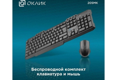 OKLICK Клавиатура + мышь Оклик 205MK клав:черный мышь:черный USB беспроводная Multimedia (1546786)