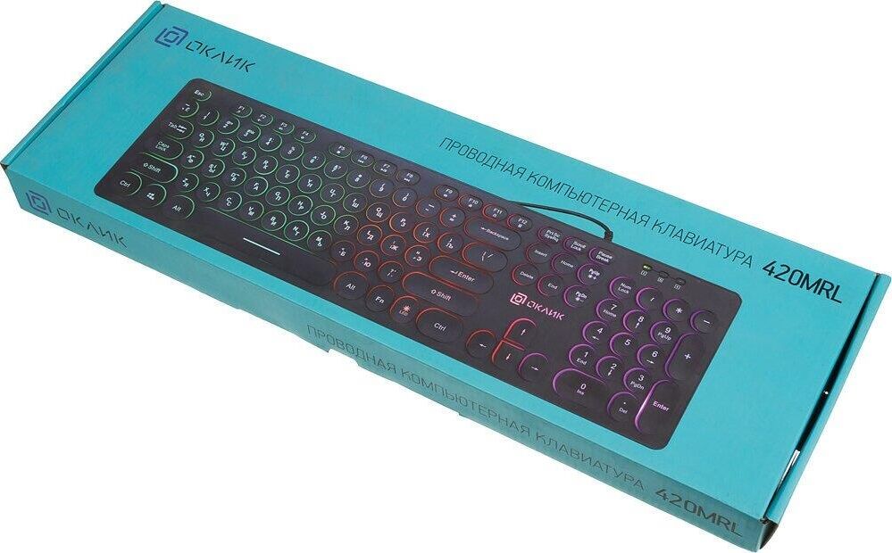 OKLICK Клавиатура Оклик 420MRL черный USB slim Multimedia LED