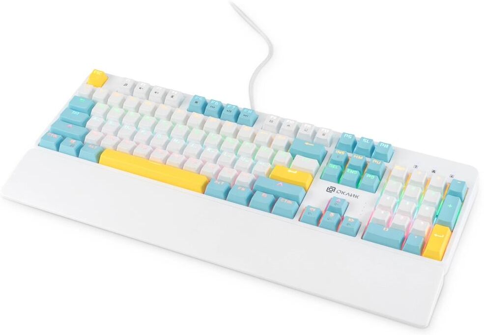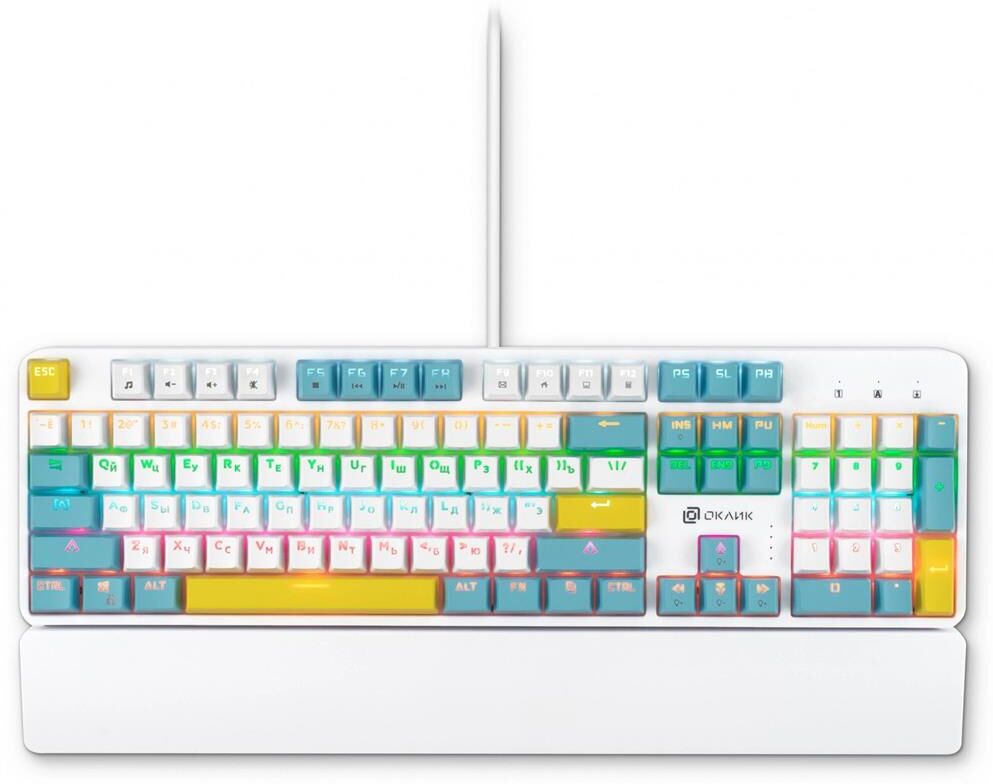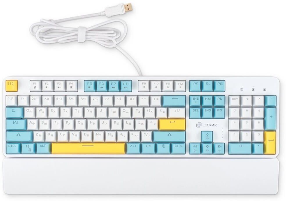 OKLICK Клавиатура Оклик K951X механическая белый USB Multimedia for gamer LED (подставка для запясти