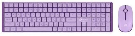 Интерфейс подключения: USB. Тип соединения клавиатуры: беспроводной. Питание клавиатуры от: 2xAAA. Тип мыши: оптическая. Разрешение сенсора максимальное: 1600. Количество кнопок мыши: 3. Питание мыши: 1xAA. Радиус действия: 20. Мультимедийные дополнительные клавиши: есть. Дизайн клавиш: квадратные. Цвет английских букв: фиолетовый. Цвет русских букв: фиолетовый. Особенности клавиатуры: Флагманский офисный комплект клавиатуры и мыши. Клавиатура механического типа дарит тактильно-приятные ощущения во время печати текста, отдаленно сравнимые с работой на хорошей печатной машинке. Дополнительный комфорт обеспечивает UV покрытие клавиш клавиатуры и мыши.. Дизайн мыши: для правой и левой руки. Цвет клавиш клавиатуры: фиолетовый. Тип беспроводного соединения: Радио. Габариты упаковки (ед) ДхШхВ: 0.49x0.21x0.05. Вес упаковки (ед): 1.52. Клавиатура с русскими буквами: с русскими буквами. Гарантия: 12 мес.. Цвет корпуса клавиатуры: сиреневый. Цвет мыши: сиреневый. Размеры клавиатуры: 435 х 121 х 30 мм. Размеры мыши: 11