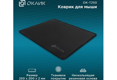 OKLICK Коврик для мыши OK-T250 (S) черный, нейлоновая ткань, 250х200х2мм