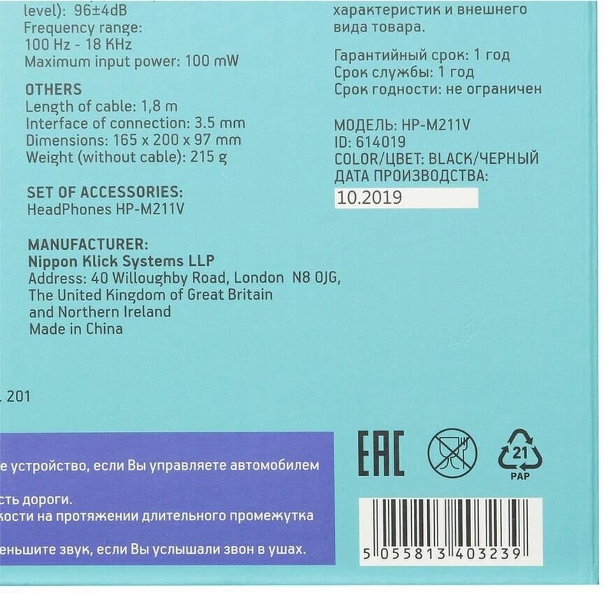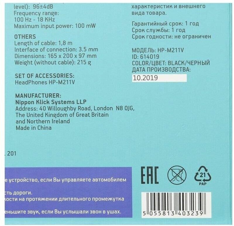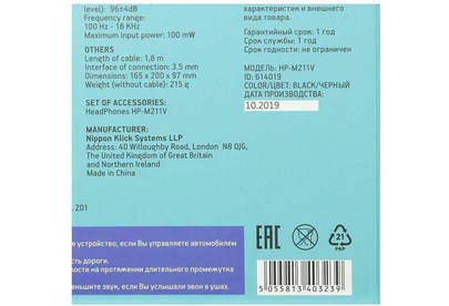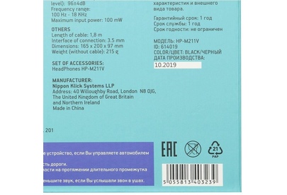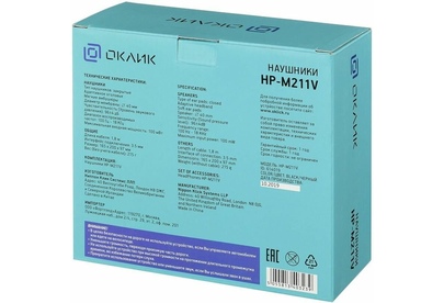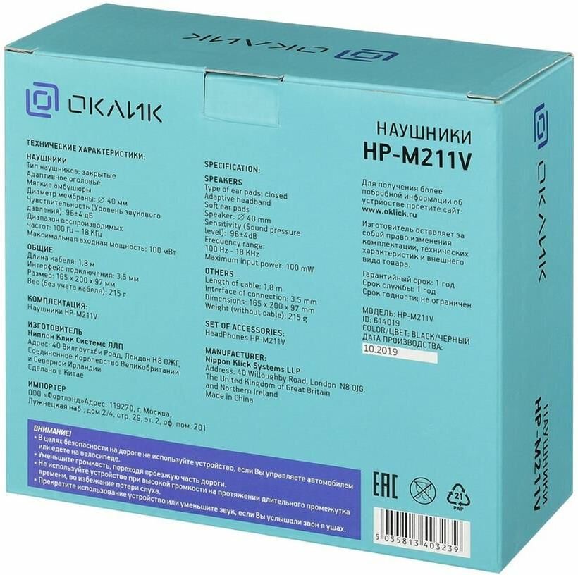 OKLICK Наушники мониторные Оклик HP-M211V 1.8м черный проводные оголовье (HP-M211VB)