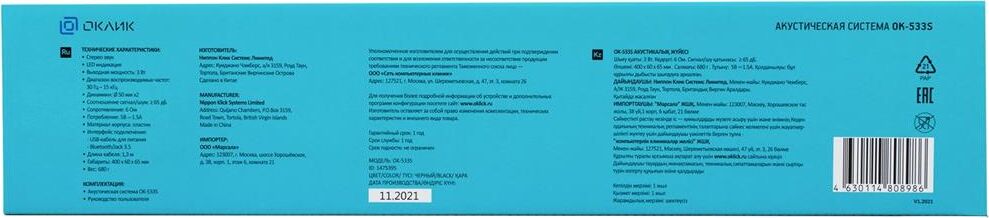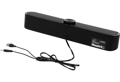 Стильный саундбар со звуковой схемой 2.0; поддержка Bluetooth; черный матовый корпус; LED-индикация; удобная ручка управления.Длина кабеля 1.3 метра