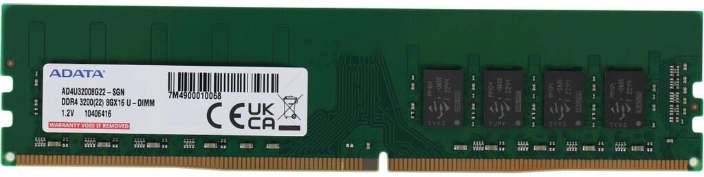 Оперативная память A-DATA Память DDR4 8Gb 3200MHz AD4U32008G22-SGN RTL PC4-25600 CL22 DIMM 288-pin 1.2В single rank Ret