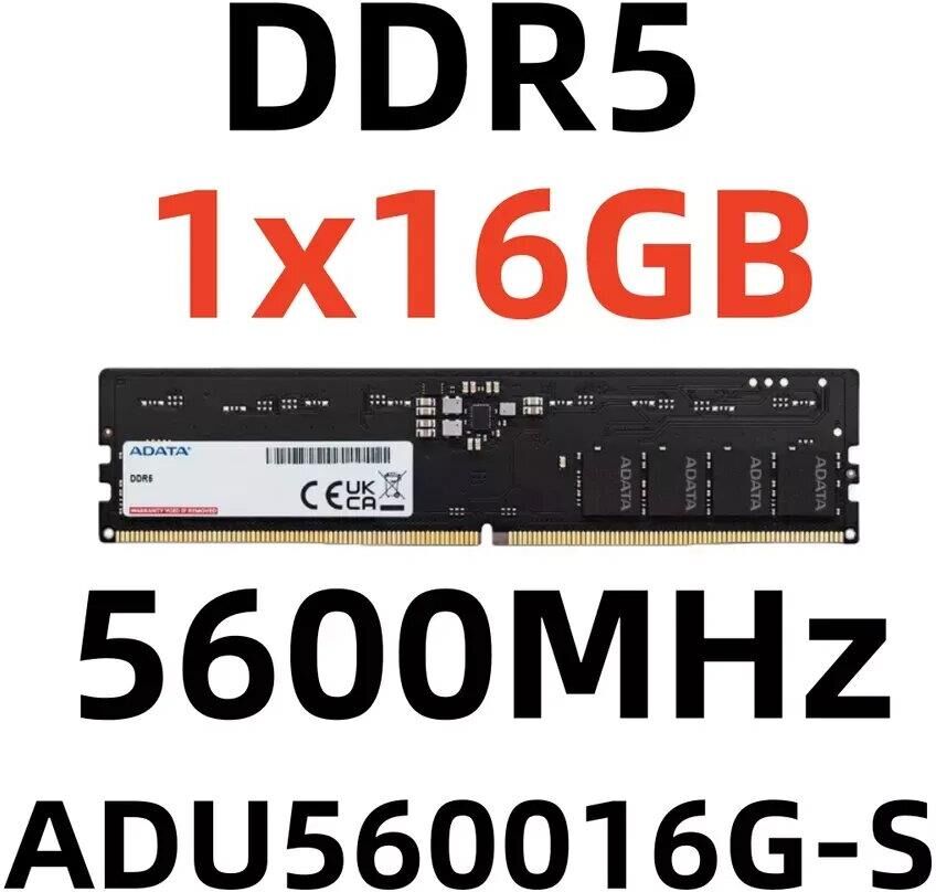 Оперативная память ADATA Память DDR5 DIMM 16Gb (PC44800, 5600MHz, CL46, 1.1V) (AD5U560016G-S)