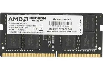 Оперативная память AMD Память DDR4 32GB 3200MHz R9432G3206S2S-U R9 RTL PC4-25600 CL22 SO-DIMM 260-pin 1.2В Ret