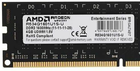 Оперативная память AMD R534G1601U1S-U RTL PC3-12800 CL11 GB 1600MHz DIMM 240-pin 1.5В Ret