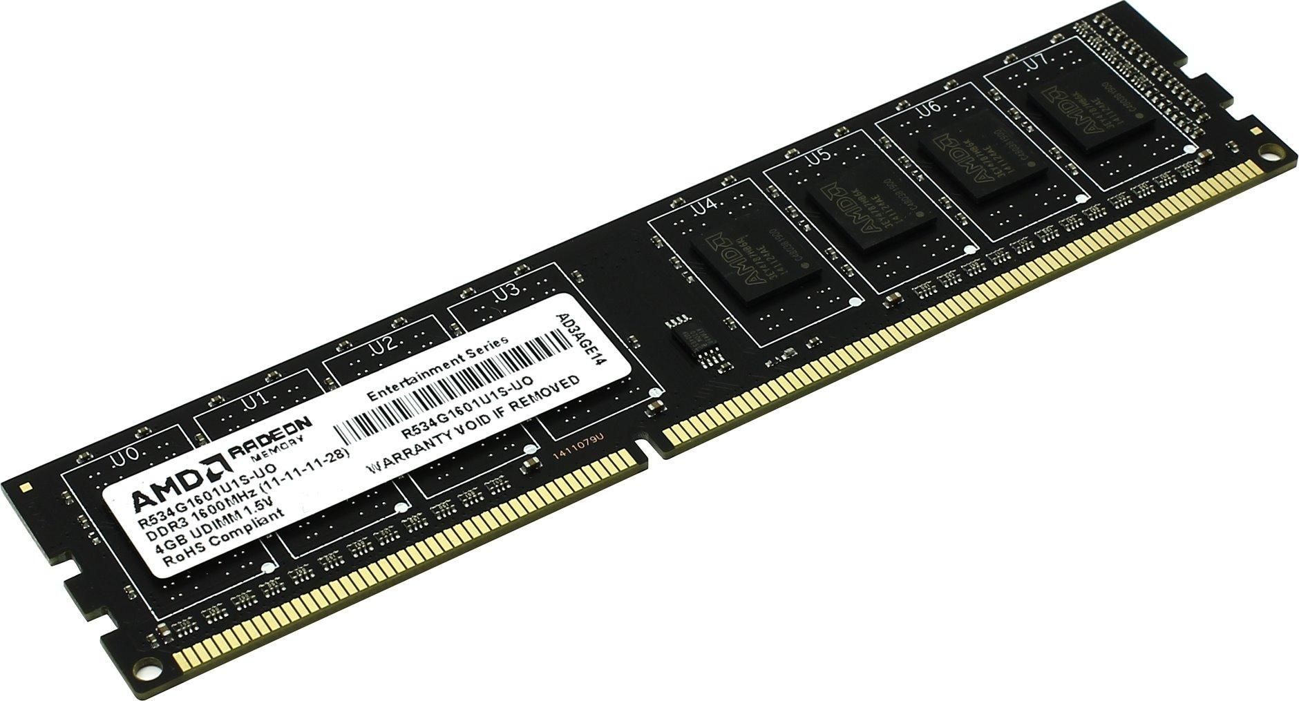 Оперативная память AMD R534G1601U1S-UO DDR3 - 4ГБ 1600, DIMM, OEM