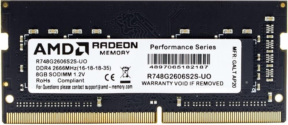 Оперативная память AMD Radeon R7 Performance Series R748G2606S2S-UO DDR4 - 8ГБ 2666, SO-DIMM, OEM