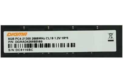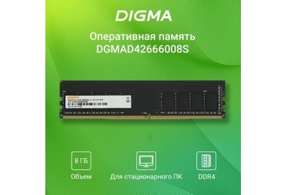 Оперативная память DIGMA DDR4 DIMM 8GB DGMAD42666008D PC4-21300, 2666MHz