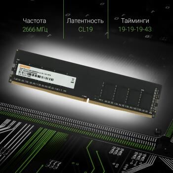 Оперативная память произведена с учетом требований передовых компьютерных систем, что гарантирует ее универсальность и надежность. Предельная частота работы устройства достигает 2666 МГц, а пропускная способность – 21300 Мб/с.