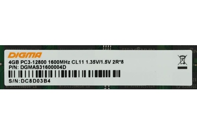 Оперативная память DIGMA Память DDR3 4GB 1600MHz DGMAS31600004D RTL PC3-12800 CL11 SO-DIMM 204-pin 1.35В dual rank Ret