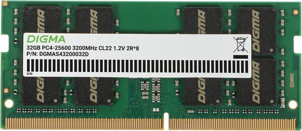 Оперативная память DIGMA Память DDR4 32GB 3200MHz DGMAS43200032D RTL PC4-25600 CL22 SO-DIMM 260-pin 1.2В dual rank Ret