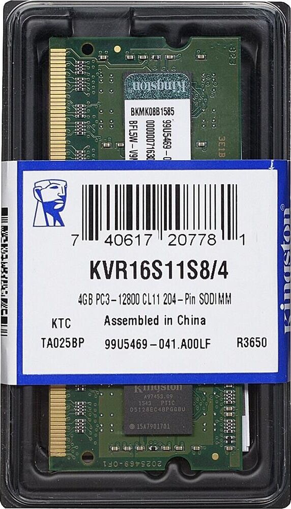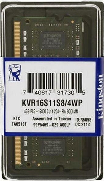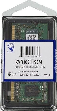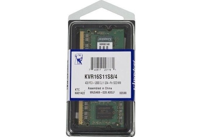Оперативная память KINGSTON 4ГБ DDR3 SODIMM 1600MHz Non-ECC 1Rx8 CL11 (KVR16S11S8/4)