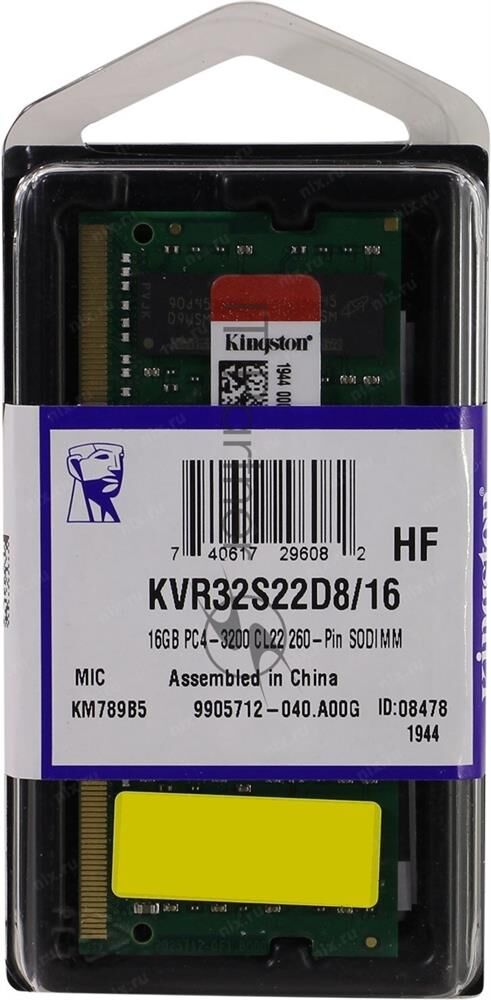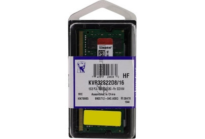 Оперативная память Kingston DDR4 SODIMM 16GB KVR32S22D8/16 PC4-25600, 3200MHz, CL22