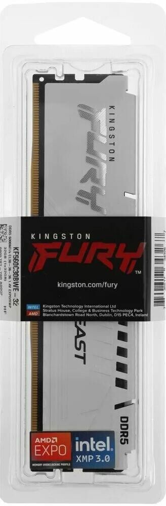 Оперативная память 32Gb DDR5 6000MHz Kingston Fury Beast White (KF560C30BWE-32) – это высококачественный и мощный компонент, который обеспечит отличную производительность вашего компьютера. Этот модуль памяти от Kingston – это идеальное решение для геймеров, видеомонтажеров и тех, кто работает с большими объемами данных. Характеристики этой памяти впечатляют: емкость 32 Гб обеспечит плавную и быструю работу системы, а скорость 6000 МГц позволит запускать даже самые требовательные приложения и игры без